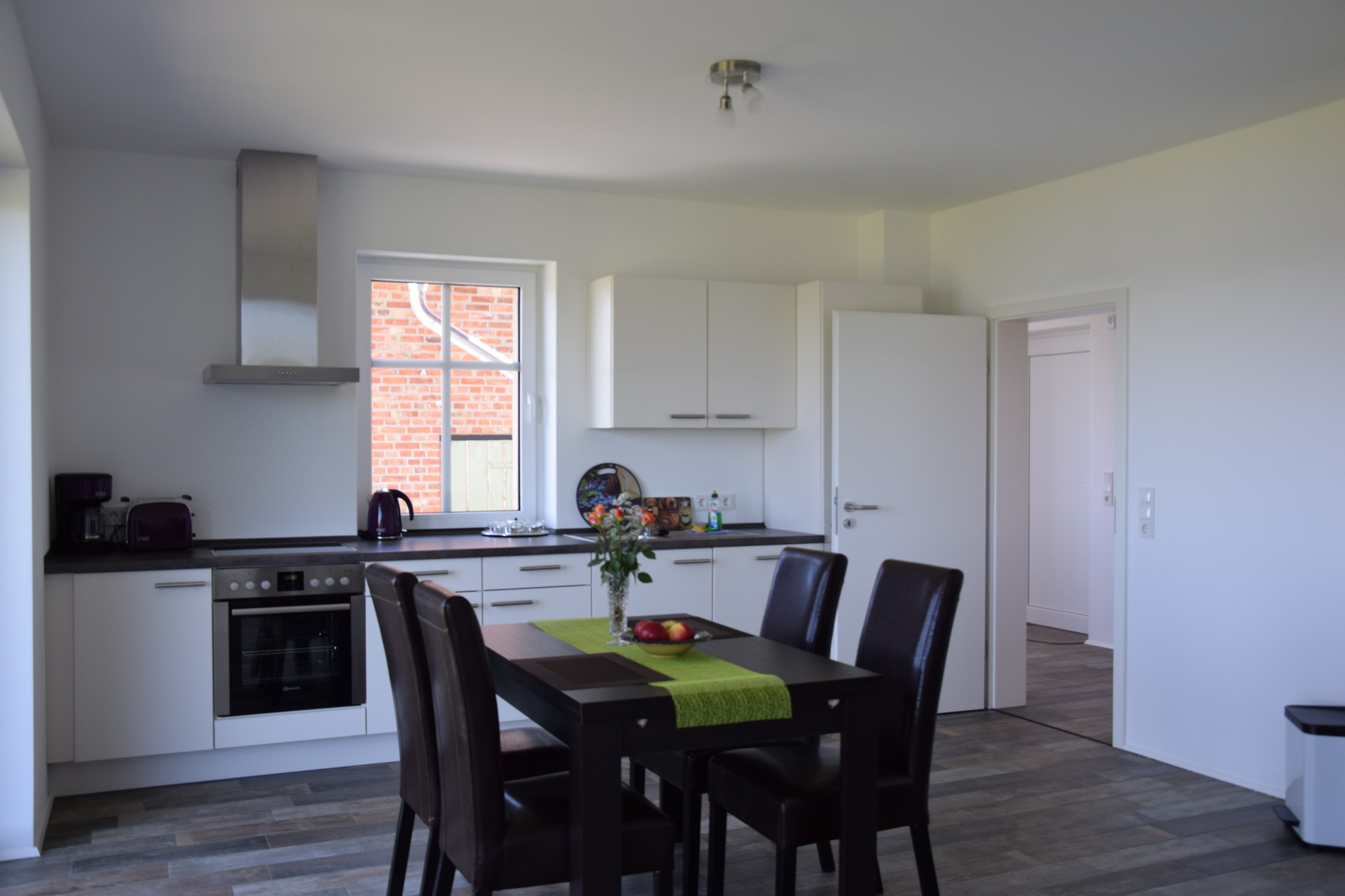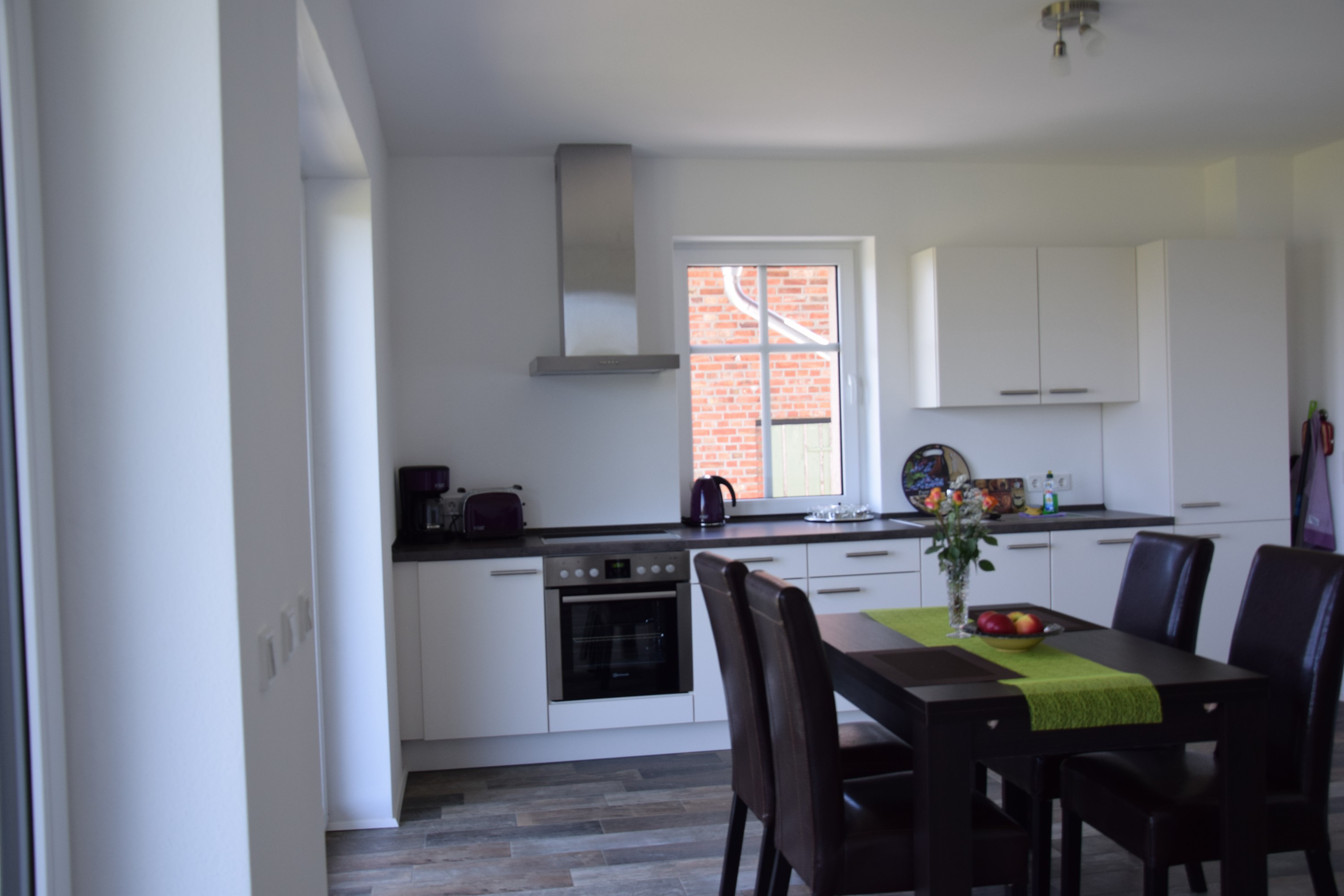 Die Ferienwohnung ist in einen Wohn-/Essbereich mit offener Küche und ein Schlafzimmer unterteilt.